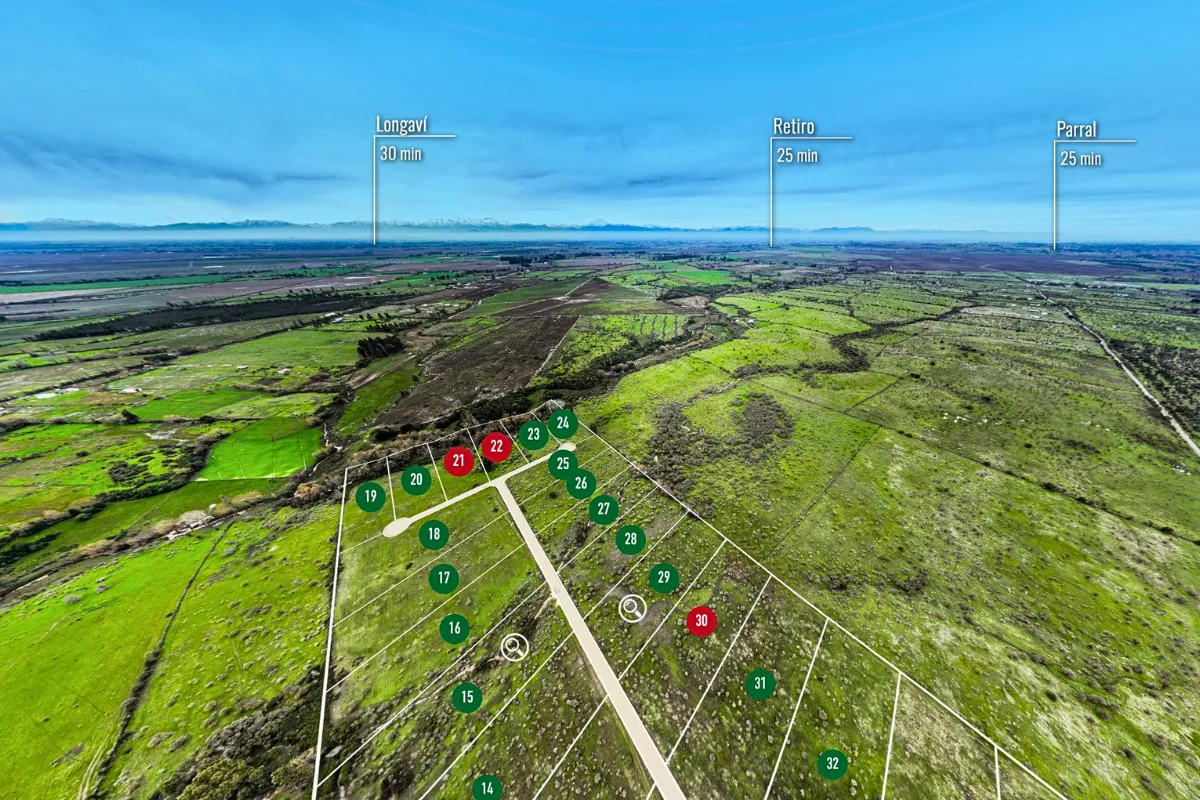 La parcelación se emplaza en un entorno rural tranquilo, con acceso cómodo y expedito. Se encuentra a solo 3 kilómetros de la Ruta L-70, lo que facilita el desplazamiento hacia Parral, Retiro y otros puntos de la zona, manteniendo una conexión fluida con servicios y centros urbanos.